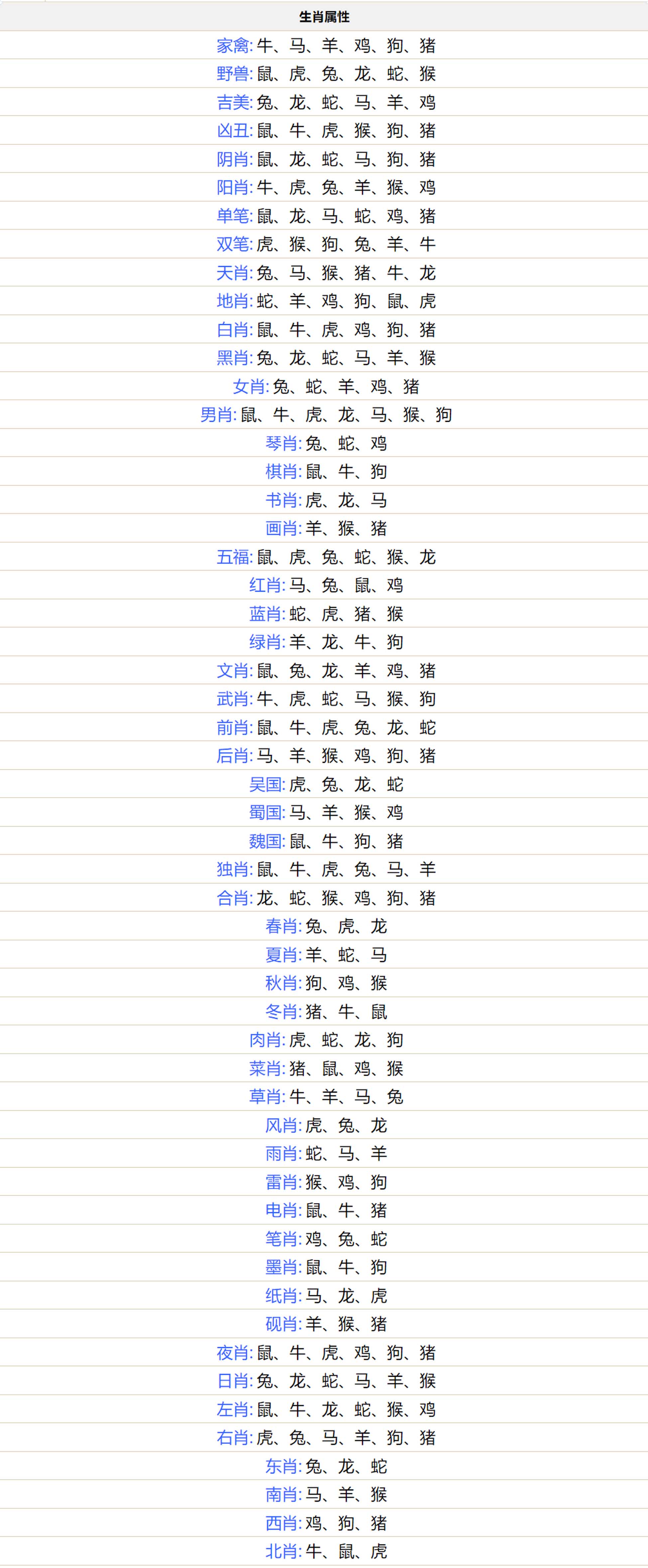 独肖:鼠牛虎兔马羊 合肖:龙蛇猴鸡狗猪