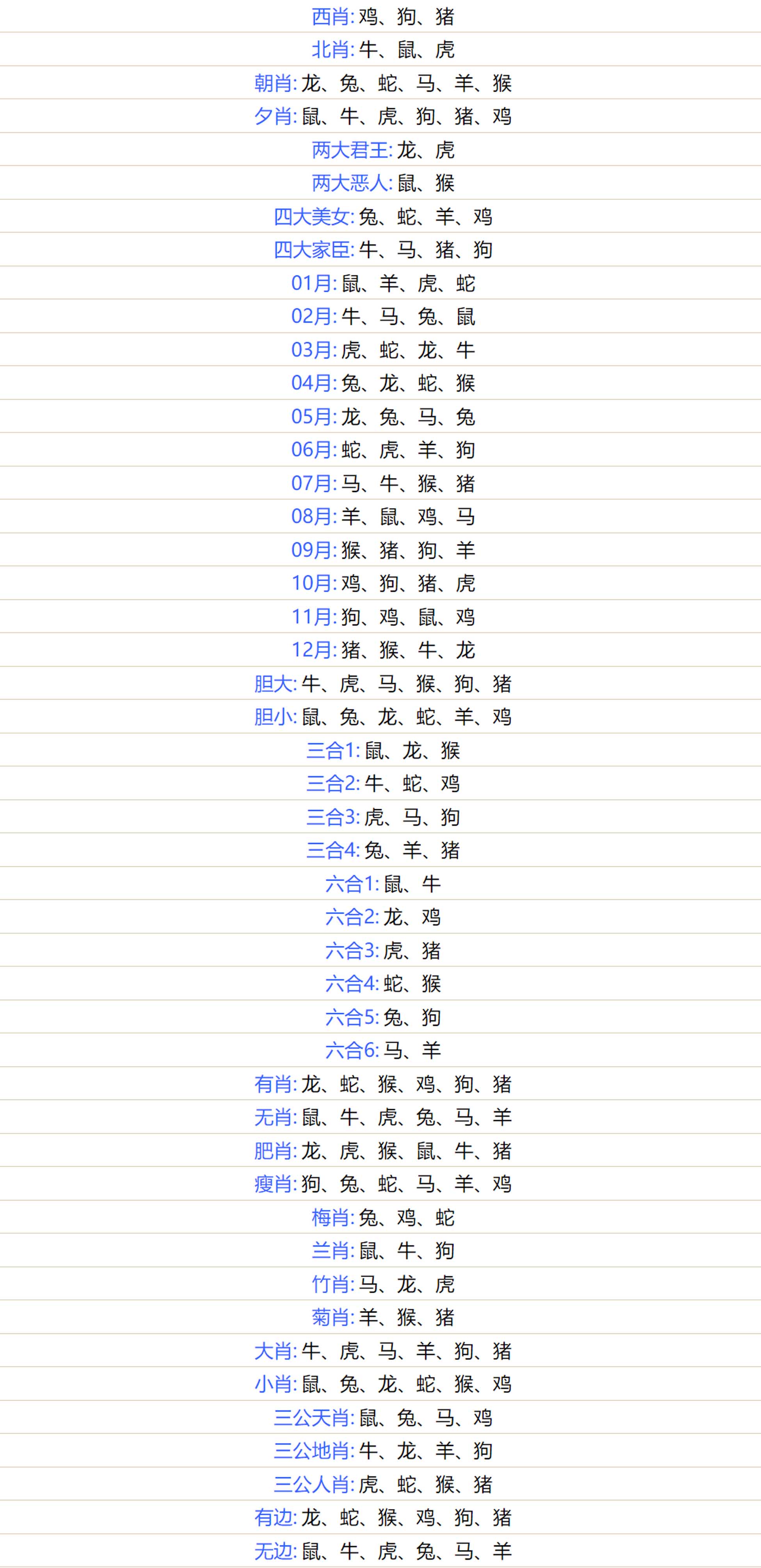 日肖:【兔龙蛇马羊猴】 夜肖:【鼠牛虎鸡狗猪】